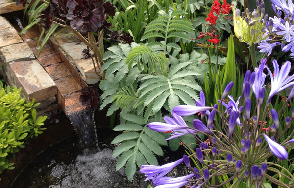 Lizz Dobinson co-founder of Nature's Curators was part of a team at Eden Project Learning that won a competition run by the Royal Horticultural Society and BBC Local Radio. Designers across the UK were asked to celebrate their local community and highlight the health and wellbeing benefits of gardening through the creation of a “Feel Good Front Garden”. This design is called Tre Wostiwedh – Cornish for “home at last” - and is based on the idea of a Cornish miner coming up from the dark depths of the earth and stepping into an exotic garden full of colour and life. The garden features a body of plants evocative of Cornwall and some of the places the miners went to work, including tree ferns, Cannas and Agapanthus. The low walls inspired by traditional hedges of the county were fashioned from Cornish slate and water moves along a copper rill into an oversized Cornish kibble, a metal bucket once used to carry ore from mines to the surface.